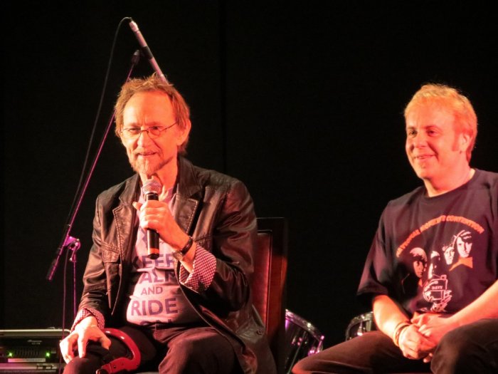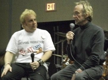 The Peter Tork Memorial Convention for Monkees Fans is proudly presented by Charles F. Rosenay!!!, whose company, Liverpool Productions, is best known for their Beatles promotions. However, Rosenay!!!, a first-generation Monkees fan, has been involved with producing Monkees celebrations for many years, and he had a long and memorable relationship with Tork dating back to when Peter was the Special Guest at the aforementioned 1982 Monkees Convention in Connecticut, which Rosenay!!! produced with Monkees Business Fanzine editor Maggie McManus. Charles interviewed Peter at that show, and numerous times thereafter, including at the epic 1987 National Monkees Convention, which famously boasted guest appearances by three Monkees (Peter, Davy and Micky) along with their esteemed songwriters Tommy Boyce and Bobby Hart. Charles also interviewed him at the 2010 BeatExpo in Stamford, CT (see photo below) and at the 2013 Davy Jones Memorial Monkees Convention. Along with booking Peter for concerts and guest spots, he and Rosenay!!! appeared together on TV.